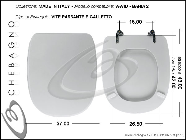 IMPORTANTE: Prima dell'acquisto controllare la corrispondenza delle misure della scheda tecnica con il sanitario.