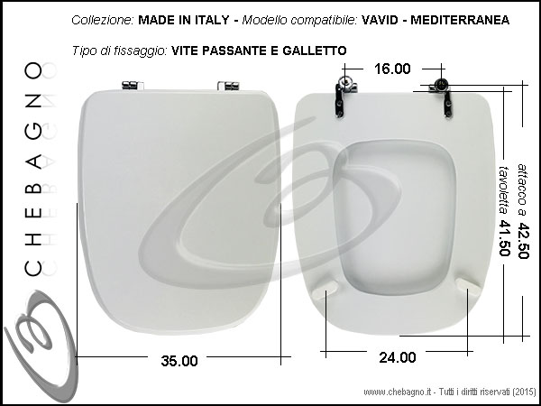 IMPORTANTE: Prima dell'acquisto controllare la corrispondenza delle misure della scheda tecnica con il sanitario.