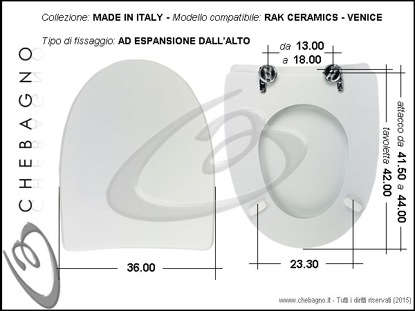 IMPORTANTE: Prima dell'acquisto controllare la corrispondenza delle misure della scheda tecnica con il sanitario.