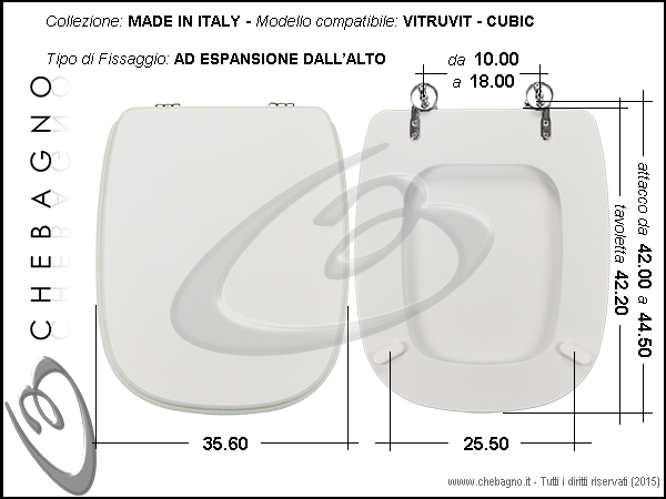 IMPORTANTE: Prima dell'acquisto controllare la corrispondenza delle misure della scheda tecnica con il sanitario.