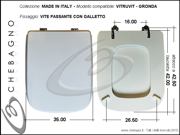 IMPORTANTE: Prima dell'acquisto controllare la corrispondenza delle misure della scheda tecnica con il sanitario.