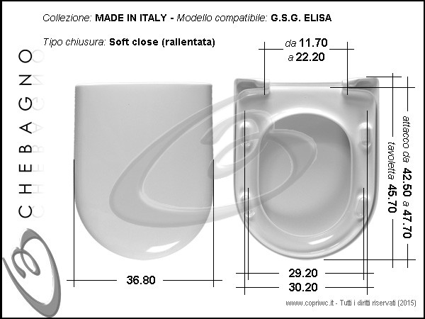 Chebagno non è in nessun modo associata né collabora con Gsg Ceramic Design Srl. Il copriwater proposto come indicato è compatibile e non originale.