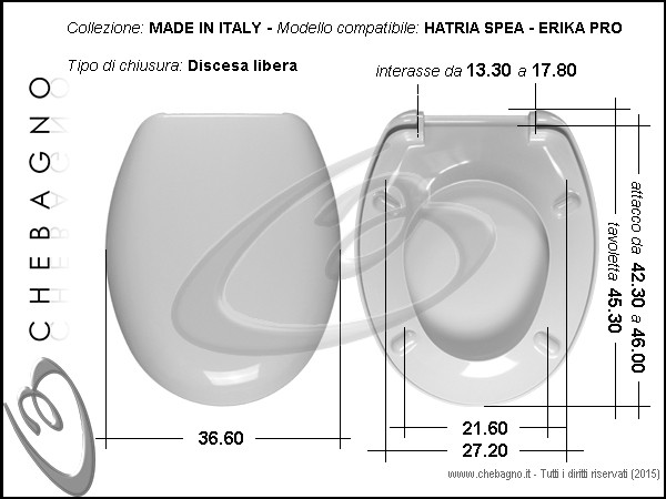 ERIKA PRO HATRIA SPEA SEDILE WC TERMOINDURENTE COPRIWATER AVVOLGENTE BIANCO MADE IN ITALY