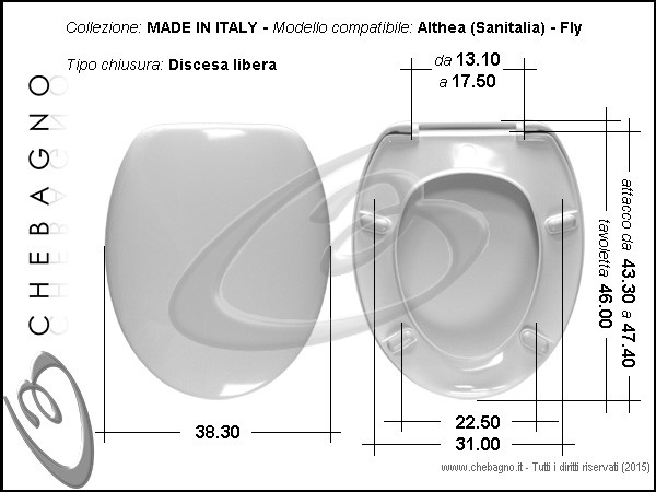 Chebagno non è in nessun modo associata né collabora con Ceramica Althea S.p.A. Il copriwater proposto come indicato è compatibile e non originale.