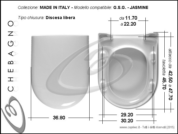 Chebagno non è in nessun modo associata né collabora con Gsg Ceramic Design Srl. Il copriwater proposto come indicato è compatibile e non originale.