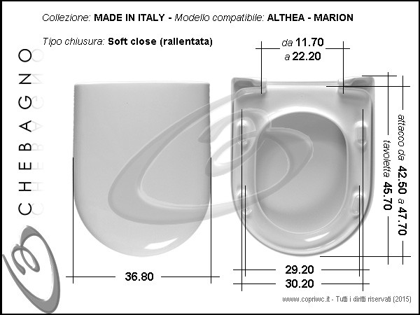 Chebagno non è in nessun modo associata né collabora con Ceramica Althea S.p.A. Il copriwater proposto come indicato è compatibile e non originale.