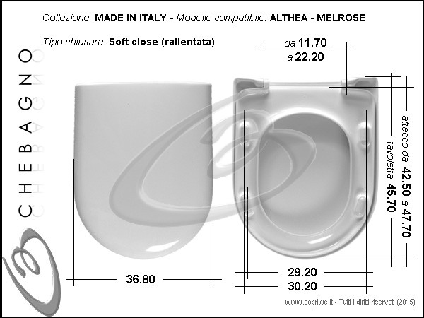 Chebagno non è in nessun modo associata né collabora con Ceramica Althea S.p.A. Il copriwater proposto come indicato è compatibile e non originale.