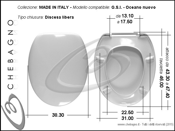 OCEANO NUOVO GSI GRUPPO SANITARI ITALIA SEDILE WC TERMOINDURENTE COPRIWATER AVVOLGENTE BIANCO MADE IN ITALY