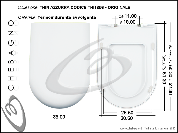 Copriwater THIN AZZURRA THI1856 ORIGINALE. Sedile wc bianco in termoindurente avvolgente. Copriwater compreso di cerniere e paracolpi.