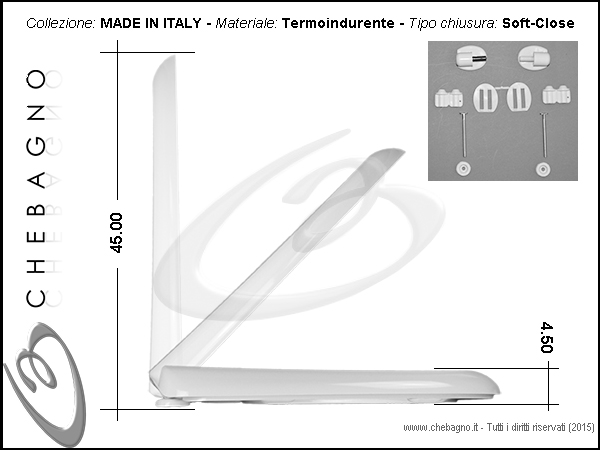 Materiale copriwater: Termoindurente (materiale che conferisce al prodotto durezza e resistenza nel tempo simile alla ceramica).