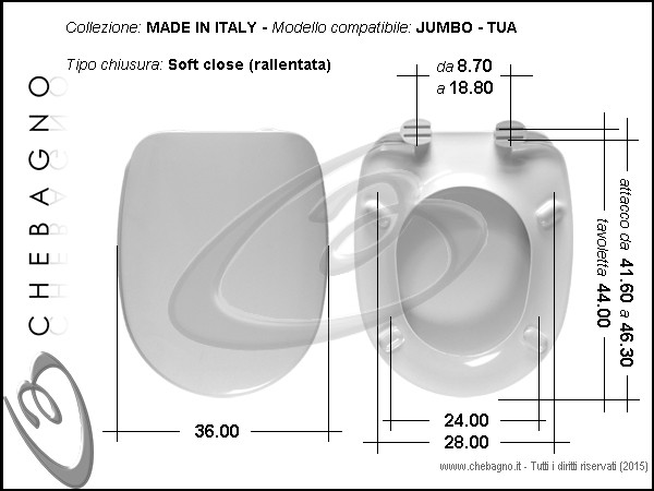 TUA JUMBO SEDILE WC TERMOINDURENTE SOFT CLOSE CHIUSURA RALLENTATA COPRIWATER BIANCO